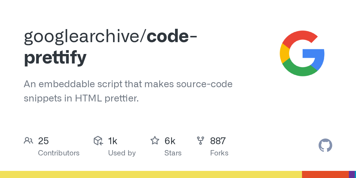 GitHub - googlearchive/code-prettify: An embeddable script that makes source-code snippets in HTML prettier.